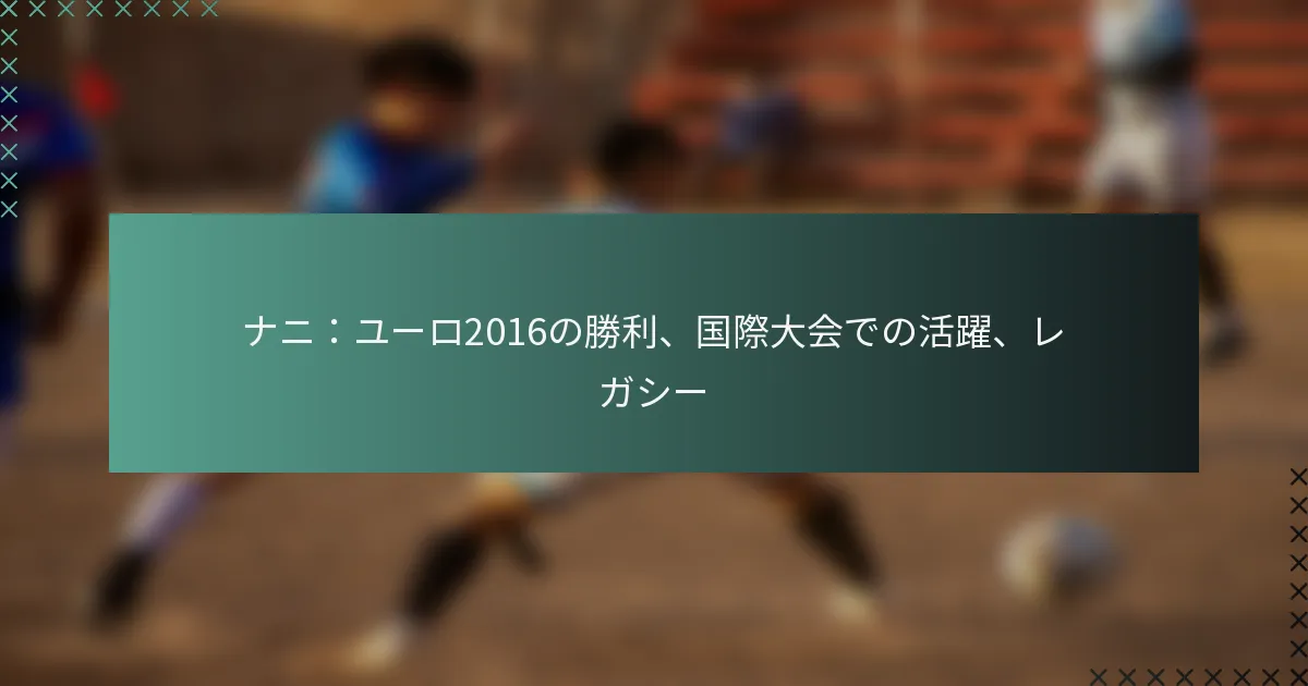 Naniの国際サッカーにおけるレガシーは、特にユーロ2016におけるポルトガルの成功への重要な貢献によって特徴づけられ、彼はチャンピオンシップを確保する上で重要な役割を果たしました。彼の影響はピッチを超え、スキル、献身、地域社会への関与を通じて未来の世代の選手たちにインスピレーションを与えています。